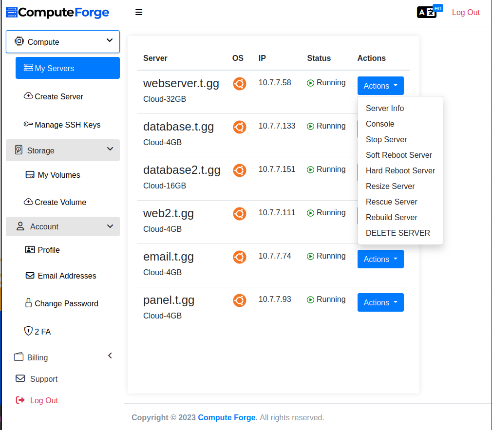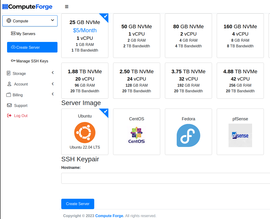 Just select the flavor, server image and hostname to provision a server and have it up and running in less than 30 seconds!